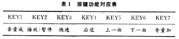 KEYl~KEY7为系统的键盘控制单元对应功能如表1所示。LEDl~LED7对应按键指示灯,如按键KEYl被按下,则LEDl灯亮。外围接口如图2所示。