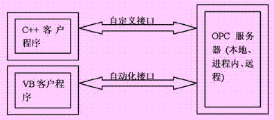 图1 自定义接口和自动化接口与opc服务器通信方式示意图