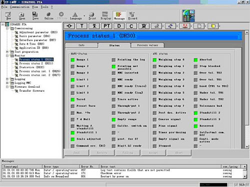 对于现场的调试和标定,西门子提供了基于Windows操作系统的SIWATOOL FTA专用程序。使得技术人员无需了解PLC编程方面的知识就能够方便的设置和调试秤,并且在软件中方便的查询秤的各种运行状态及参数,如图5: