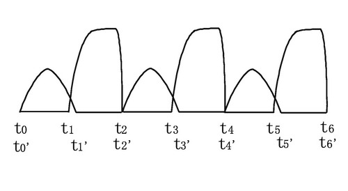 t0 -t2的过程就是一个电磁振荡的过程,也是电磁振荡的一个周期,以后的过程与这段时间相同,如图3中,t2-t3过程与t0-t1过程完全相同,t3- t4过程与t1-t2过程完全相同。t0-t1的时间间隔取决于谐振线圈L2和谐振电容C3,所以这个电磁振荡的频率f主要取决于L2和C3。