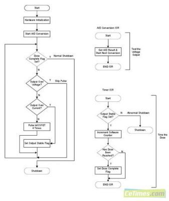 输液持续的时间由一个内置的16位硬件定时器和一个16位软件定时器来控制。当达到预期剂量时,微控制器停止转换MOSFET并进入睡眠状态,再等待下一次按钮来启动。为了增加患者的舒适度,在上电顺序期间的输出电压上升速度可以调节。