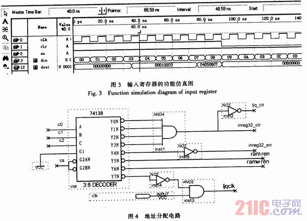 地址分配模块采用一个3/8译码器来实现地址选通的功能,如图4所示。