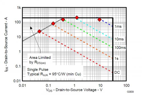 图 3 散热模型与指示点的 MOSFET CSD17312 SOA 曲线一致
