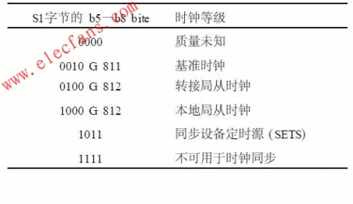 S1字节位于SDH 帧结构中的MSOH 中的第9行、第1列。在ITUT - TG. 703建议中规定了STM - N接口的SSM编码方式,用复用段开销字节S1的b5~b8 bite表示。S1字节定义如表1所示。