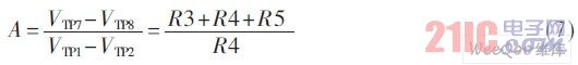 假设A 为差分放大电路的差分放大倍数, 则由式(5) 、式(6) 可得: