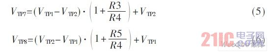 由表5 可知,VTP1=980.0 mV,VTP2=880.9 mV, 带入式(5) 和式(6) , 可得VTP7 =1971 mV,VTP8 =-100.1 mV, 其中VTP1、VTP2、VTP7、VTP8的值均为矢量值。表5 所示峰峰值测量结果表明交流信号的放大是正确的。