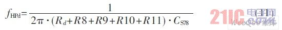 假设电容C7 与C8 的串联等效电容为CS78, 则差模高通滤波器的截止fHPd频率为: