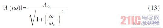 假设一阶RC 低通滤波器通带电压增益为A0, 则其幅频响应可以用式(13) 表示。