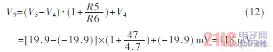 假设图3 中3、4、9 处的交流信号峰峰值电压分别为V3、V4、V9, 则由式(5) 可得: