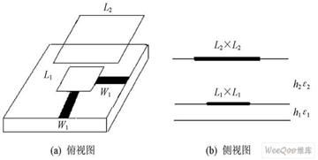 具体的推导步骤如下,假设下层贴片的谐振频率为f 01 ,边长为Le1 ,上层贴片的谐振频率为f 02 ,边长为Le2 ,有: