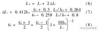 式中: L ei 与L i 分别表示贴片的实际边长和贴片的伸长量; εei 为有效介电常数。