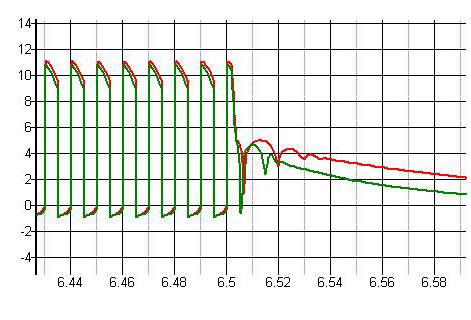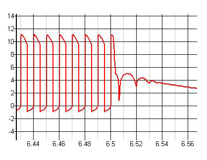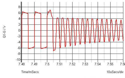 可见,在驱动突然关掉之后,C1上的能量,会引起驱动变的电感,C1以及mos的结电容之间的谐振。如果这个谐振电压足够高的话,就会触发MOS,对可靠性带来危害。