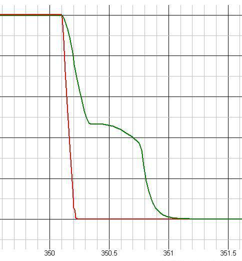 那么驱动的快慢对MOS的开关有什么影响呢?下图是MOS导通时候DS的电压: