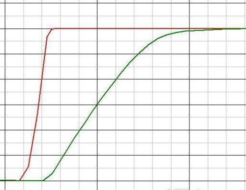 红色的是R3=1欧姆,绿色的是R3=100欧姆。可见R3越大,MOS的导通速度越慢。