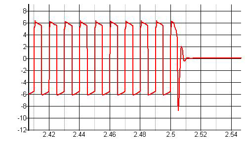 可看到,驱动信号在关机的时候,没有了上面的那些震荡。