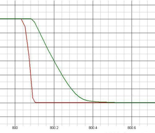 红色波形为R3=1欧姆,绿色为R3=100欧姆。可以看到,当R3比较大时,驱动就有点力不从心了,特别在处理米勒效应的时候,驱动电压上升很缓慢。