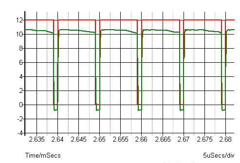 驱动源参数为12V ,100KHz, D=0.5。
