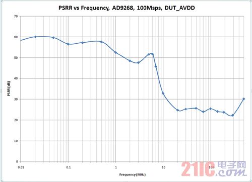 图1:典型ADC电源抑制比与频率的关系
