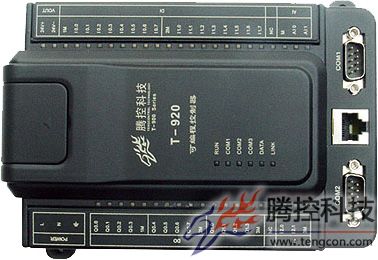 T-920可编程逻辑控制器是腾控T-900系列PLC其中一款产品,使用最大频率72MHz的ARM工业级CPU,外扩32M SDRAM和4M FLASH,嵌入式操作系统,1M用户程序存储区和100K用户数据存储区。编程软件使用KW MULTIPROG,通过以太网下载程序,另有2路RS232/485接口。T-920集成18路DI、12路DO、2路AI、2路高速脉冲计数、24VDC VOUT于一体。