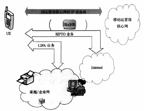 ●用于家庭/ 企业网业务的LIPA,终端可以通过H(e)NB 直接访问用户家庭网络或企业网中其他具备IP 能力的设备。