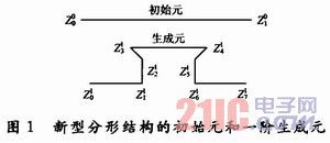 分形结构的天线构造形式很多,本文采用两点格式法进行构造新型分形天线。先定义一个初始元和一个生成元,初始元给定了分形图形的框架,生成元给定了新型分形天线的构造方法。此新型分形天线的初始元和生成元如图1所示。
