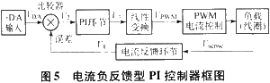 在一个确定不变的D/A输入信号下,若负载电流由于温度而变大,则Vsense变大,根据式(3),V3将变小,占空比减小,导致输出电流减小从而抵消负载电流的增大,维持负载电流稳定。若考虑到当大电流时,采样电阻功耗太大,发热严重,可取消电流反馈回路。