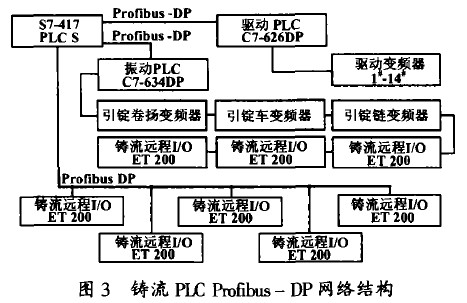 以铸流PIE为例,它有3条Profibus—DP构成,CPU为CPU417—4DP,最多带有4个Profibus—DP接口供用户使用,如图3所示。