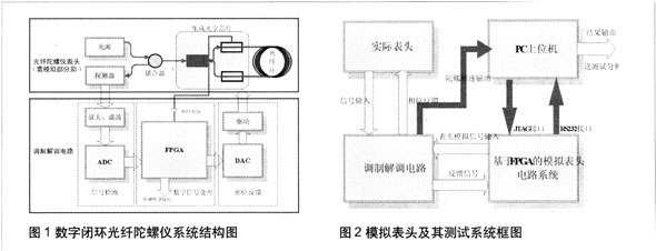 表头的主要功能是将Sagnac效应产生的光程差所引起的相位变化通过回路耦合器转换为光功率的变化,再通过探测器探测后以电信号的形式输出至调制解调电路中。数字闭环光纤陀螺仪系统结构见图1。从调制解调电路中采样来的原始参数值,经过模拟表头内数字信号处理,可将输入调制解调电路的实际表头信号还原出来。得到初始还原值之后,通过在模拟表头中进行修改、加载不同类型的参数值,从而检测调制解调电路中相应的性能指标。