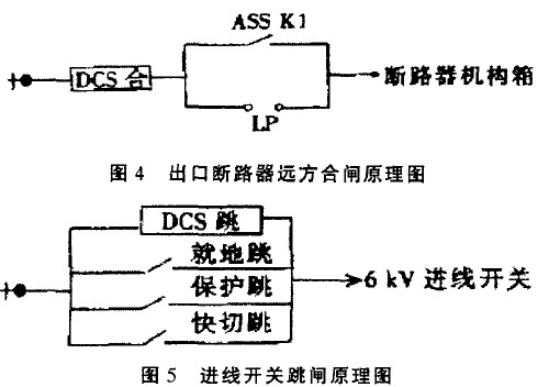 DCS在发变组系统出口断路器和高、低压厂用配电装置电源断路器控制中主要用于替代传统的远方手动操作开关,开关远方合跳的各项条件判断通过程序在DCS中实现。