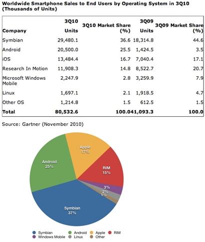 *Gartner 2010 Q3 Worldwide Smartphone Sales