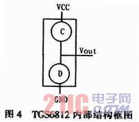 采用催化燃烧式气体传感器TGS6812,TGS6812适用于检测氢气、甲烷和液化石油气等可燃性气体,传感器精度高、持久耐用、稳定可靠、响应快速和线性输出的良好特性。所以TGS6812是检测家用燃气的良好解决方案,其内部大致结构框图如图4所示。