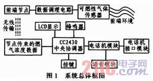 本文设计的基于ZigBee技术的无线智能家用燃气报警系统是以CC2430为核心,与电话机网络、语音电路及可燃性气体传感器相结合,通过无线节点的布网,实时监测家用燃气气体浓度来检测是否有可燃性气体泄漏,如果有泄漏并超过安全的范围,通过ZigBee终端节点把数据传到中心协调器,通过微控制器控制电话机模块和语音模块拨打求助电话,通知家人有安全隐患,并且同时将报警信号发送给小区的监控中心。