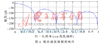 由式(1)得到的梳状滤波器的幅频特性如图4所示。