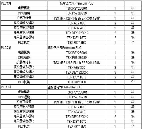 整个厂区共有3个PLC站,硬件采用施耐德电气Premium PLC,分别用光纤及光纤交换机,采用星型连接方式构成以太网络连接至中控室,在 PLC2站,现场电力仪表采用Modbus通讯方式实现数据的采集;软件采用施耐德的PL7Pro,根据控制要求开发程序,完全可以实现前面描述的控制要求。三个站分别处于进水泵房、配电房、脱水机房,基本配置如下: