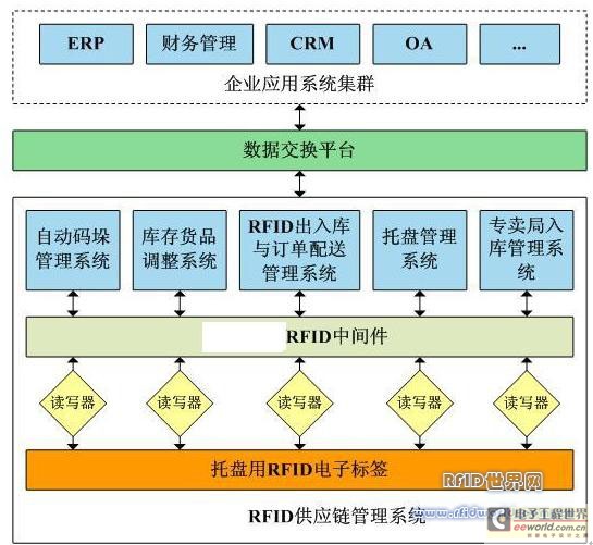 本系统通过嵌有RFID电子标签的托盘、布设在各关键节点的读写设备与辅助设备、以及相关的软件系统,完美的融合了现有技术与软硬件系统,实现了准确高效、可视可控、大吞吐量的智能化企业供应链管理。