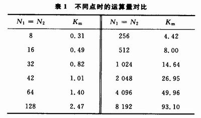 从表1可知,当N1<42时,FFT法的运算量小于直接卷积的运算量,当N1=42时,FFT法的运算量与直接卷积的运算量相当,当N1>42时,FFT法的运算量大于直接卷积的运算量,并且随着N1增加,FFT法的运算速度越来越快,特别是N1=8 192时,FFT法的运算速度与直接卷积相比快上将近100倍。