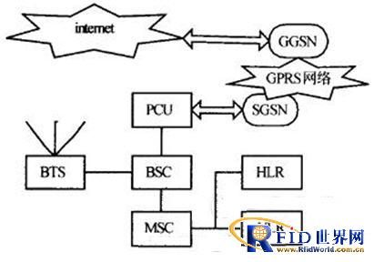 GPRS 是基于现有的GSM网络实现的,需要在现有的GSM网络中增加一些节点,网关GPRS支持节点GGSN,服务GPRS支持节点SGSN。 GGSN在GPRS网络和公用数据网之间起关口站的作用,它可以和多种不同的数据网络连接;SGSN记录移动设备的当前位置信息,并在移动设备和各种数据网络之间完成移动分组数据的发送和接收,为服务区内所有用户提供双向分组路由。GPRS网络框图如图1所示。