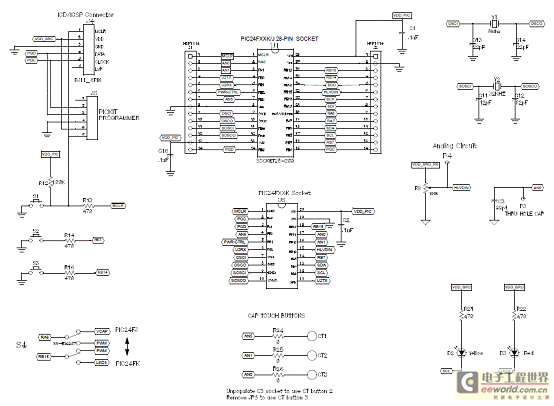 图4。XLP 16位开发板电路图(1):MCU插座和相关元件