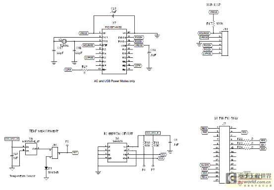 图5。XLP 16位开发板电路图(2):USB/串行接口,EEPROM,温度传感器和28引脚接口