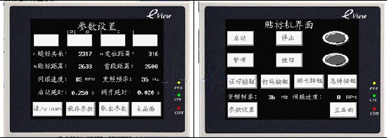 说明:画面简单,操作方便,直接实现触摸屏对博玮BWS伺服的操控,完成贴标的参数设置和动作控制。