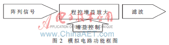 最终通过对前端模拟电路的二次集成方法来确保产品的一致性,更好地保证传声器相位一致性,提高探测精度。模拟电路功能组成如图2所示。