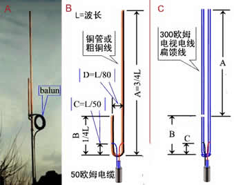 J型天线因制作简单,取材容易,一直受调频发射机爱好者青睐,制作时可以选用1 mm左右的空调铜管,按照计算的尺寸制作,无需专业工具制作就能获很好的效果。如找不到铜管,亦可以用2.5平方的铜线制作。